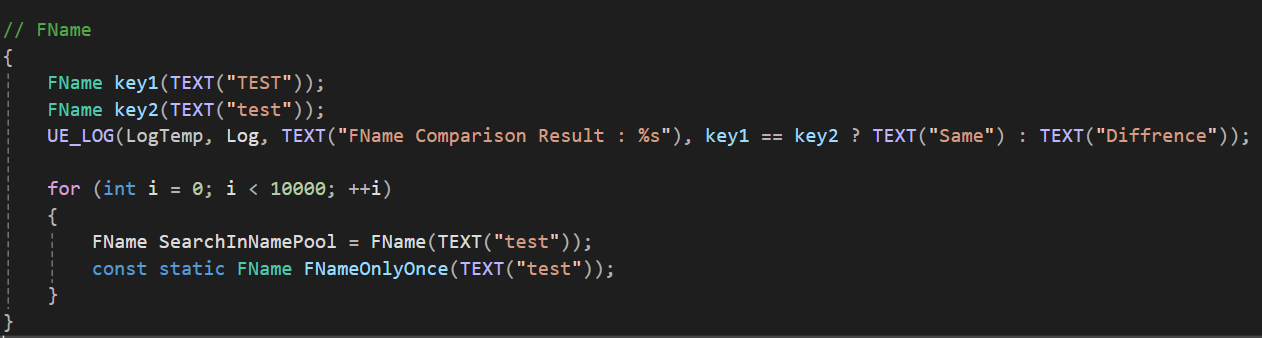 FName SearchOnNamePool = FName(TEXT("test"));